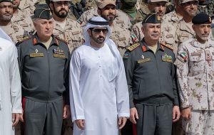 His Highness was accompanied during the visit by H.H. Sheikh Hamdan bin Mohammed bin Rashid Al Maktoum, Crown Prince of Dubai, Deputy Prime Minister, Minister of Defence; H.H. Sheikh Hazza bin Zayed Al Nahyan, Ruler’s Representative in Al Ain Region; H.H. Sheikh Theyab bin Mohamed bin Zayed Al Nahyan, Deputy Chairman of the Presidential Court for Development and Fallen Heroes’ Affairs; Mohamed Mubarak Fadhel Al Mazrouei, Minister of State for Defence Affairs; Lieutenant General Ibrahim Nasser Al Alawi, Under-Secretary of the Ministry of Defence; Hamad Mohammed Thani Al Rumaithi, Military Affairs Adviser to the UAE President; Khaldoon Khalifa Al Mubarak, Chairman of the Executive Affairs Authority; Faisal Abdulaziz Mohammed Al Bannai, Adviser to the UAE President for Strategic Research and Advanced Technology Affairs; and a number of senior officers of the Ministry of Defence..