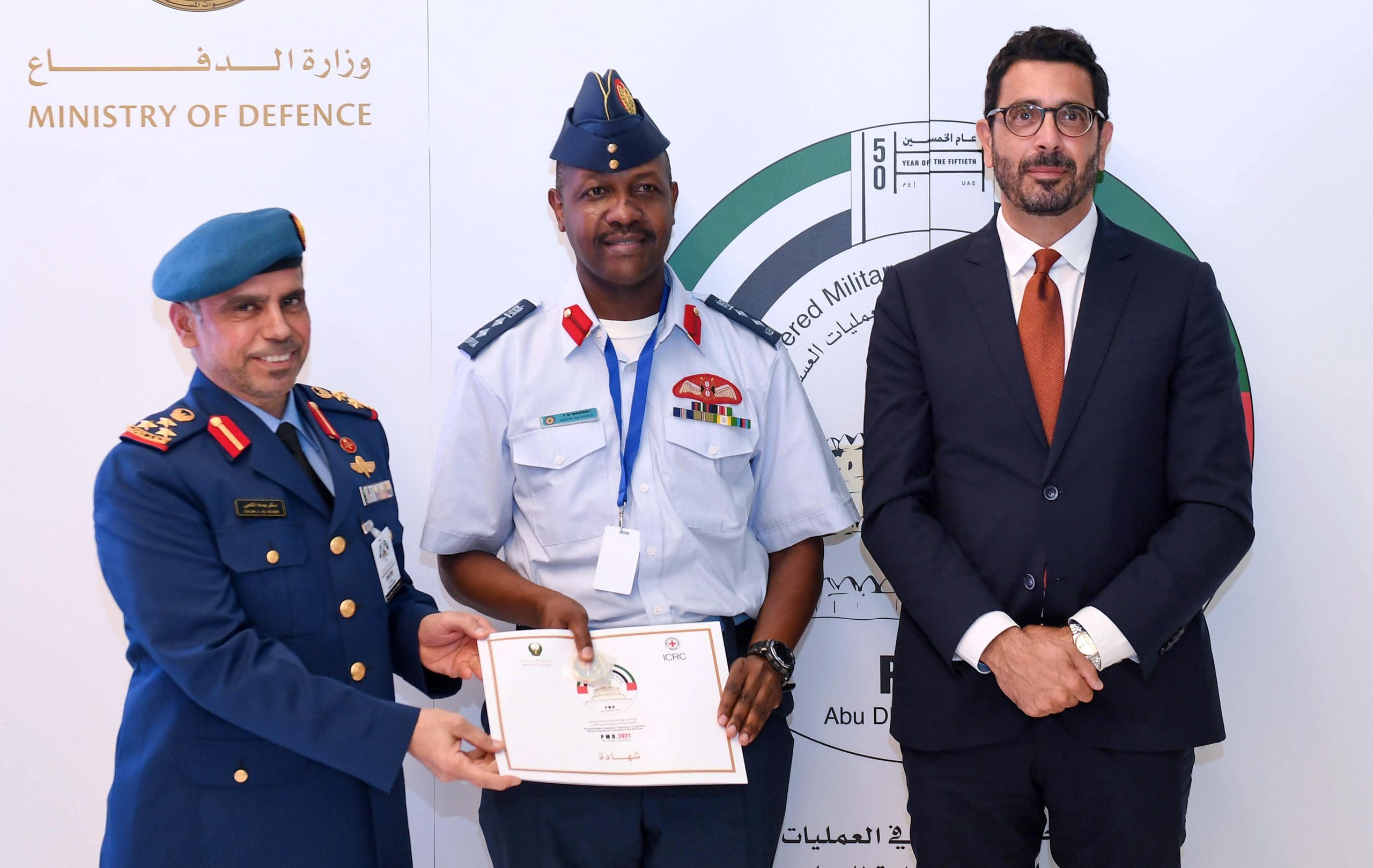 وقال العميد الركن الحقوقي سالم جمعة راشد الكعبي رئيس الإدارة التنفيذية للقضاء العسكري في وزارة الدفاع: “إن دولة الإمارات العربية المتحدة عازمة على مواصلة اتباع منهجية استباقية في العمل من أجل التخفيف من آثار الكوارث والأزمات على المنكوبين والتوصل إلى حلول تحمي الحقوق وتحقن الدماء وتحد من استنزاف الموارد المادية والبشرية وهذا ما تضمنته مبادئ وثيقة الخمسين التي أعلنها سيدي صاحب السمو الشيخ خليفة بن زايد آل نهيان رئيس الدولة القائد الأعلى للقوات المسلحة “حفظه الله” قيماً ومبادئ تجسد سياسة دولة الإمارات العربية المتحدة الراسخة في مساعدة ودعم الشعوب ونجدة الملهوف والمستغيث في وطن عنوانه الإنسانية”.