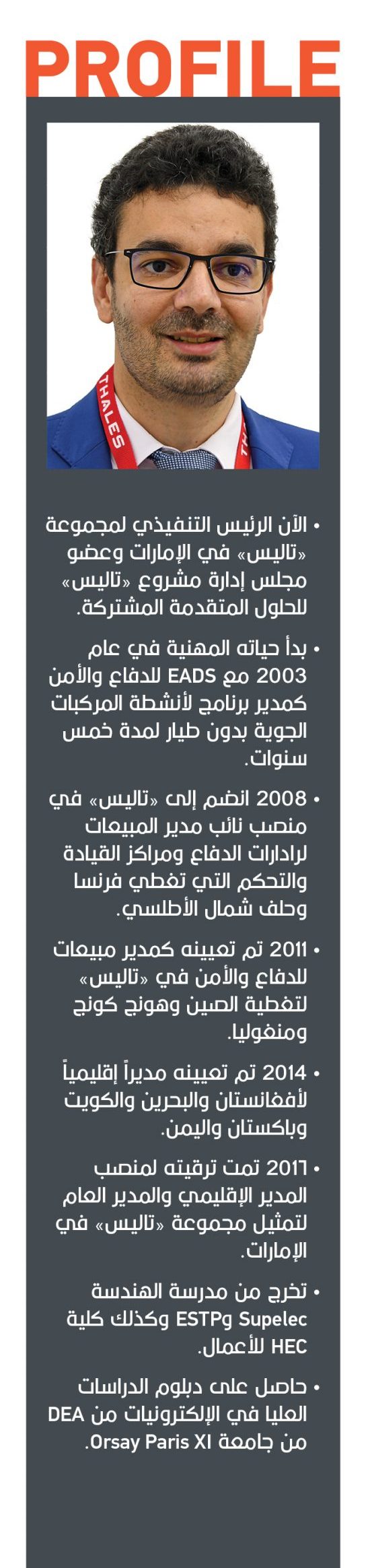 هل لك أن تحدثنا عن شركة «تاليس» وأنشطتها في المنطقة بشكل عام ودولة الإمارات بشكل خاص. وما هي أبرز منتجاتكم وخدماتكم ومجالات عملكم في الإمارات؟