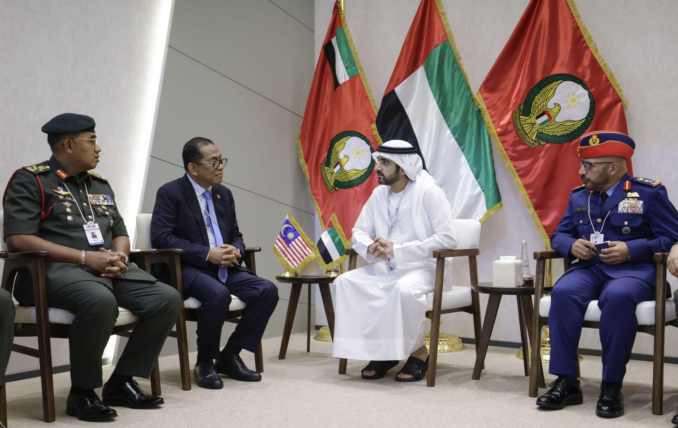 وخلال اللقاء، رحّب سموه بوزير الدفاع الماليزي، مؤكداً أن دولة الإمارات تتبنى نهجاً قائماً على التعاون البناء والانفتاح مع كافة الدول الشقيقة والصديقة، مشيراً إلى أن العلاقات الثنائية بين البلدين تشهد نموا متزايدا في ضوء الرغبة المشتركة في الارتقاء بمختلف مساراتها وضمن شتى المجالات.