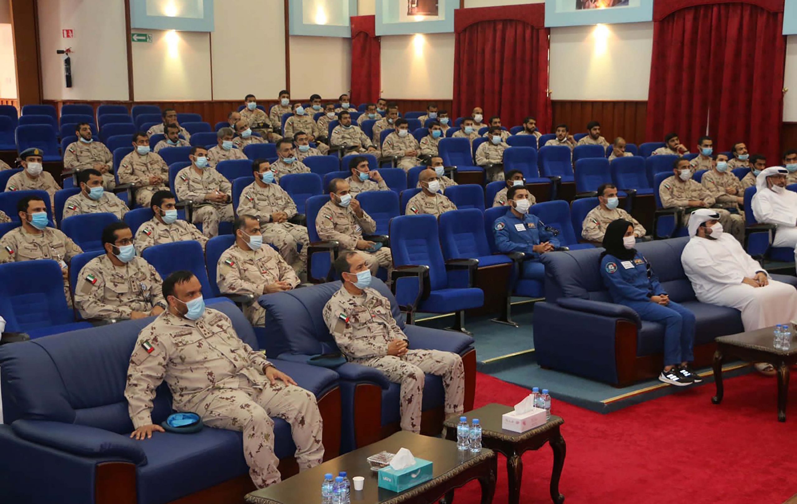 زار وفد من مركز محمد بن راشد للفضاء يضم كل من هزاع المنصوري وسلطان النيادي ونورا المطروشي ومحمد الملا رواد الفضاء الإماراتيين معهد القوات الجويه والدفاع الجوي.