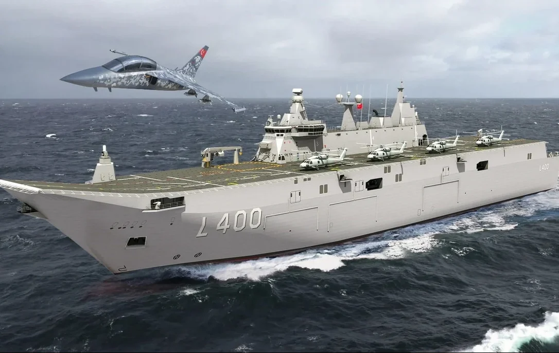 تسلّم سلاح البحرية التركي سفينة جديدة محلية الصنع قادرة على حمل المروحيات والطائرات المسيّرة.