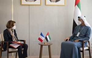 استقبل صاحب السمو الشيخ محمد بن زايد آل نهيان ولي عهد أبوظبي نائب القائد الأعلى للقوات المسلحة ــ كلا على حده – فخامة رستم نور علي مينيخانوف رئيس جمهورية تتارستان الصديقة ومعالي فلورنس بارلي وزيرة القوات المسلحة في الجمهورية الفرنسية الصديقة.. وذلك على هامش فعاليات اليوم الثاني22 فبراير 2021 لمعرض ومؤتمر الدفاع الدولي ” آيدكس 2021 ” الذي يستضيفه مركز أبوظبي الوطني للمعارض ” أدنيك”.
