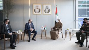 وتناول اللقاءان أهمية استضافة دولة الإمارات معرض “آيدكس 2021” أحد أهم المنصات العالمية المعنية بمستقبل صناعات الدفاع والأمن خلال هذه الظروف الاستثنائية التي يشهدها العالم، إضافة إلى إتاحته فرص تعزيز التعاون وعقد شراكات استراتيجية بين الدول تخدم الأمن والسلام والاستقرار ومواجهة التحديات المشتركة.
