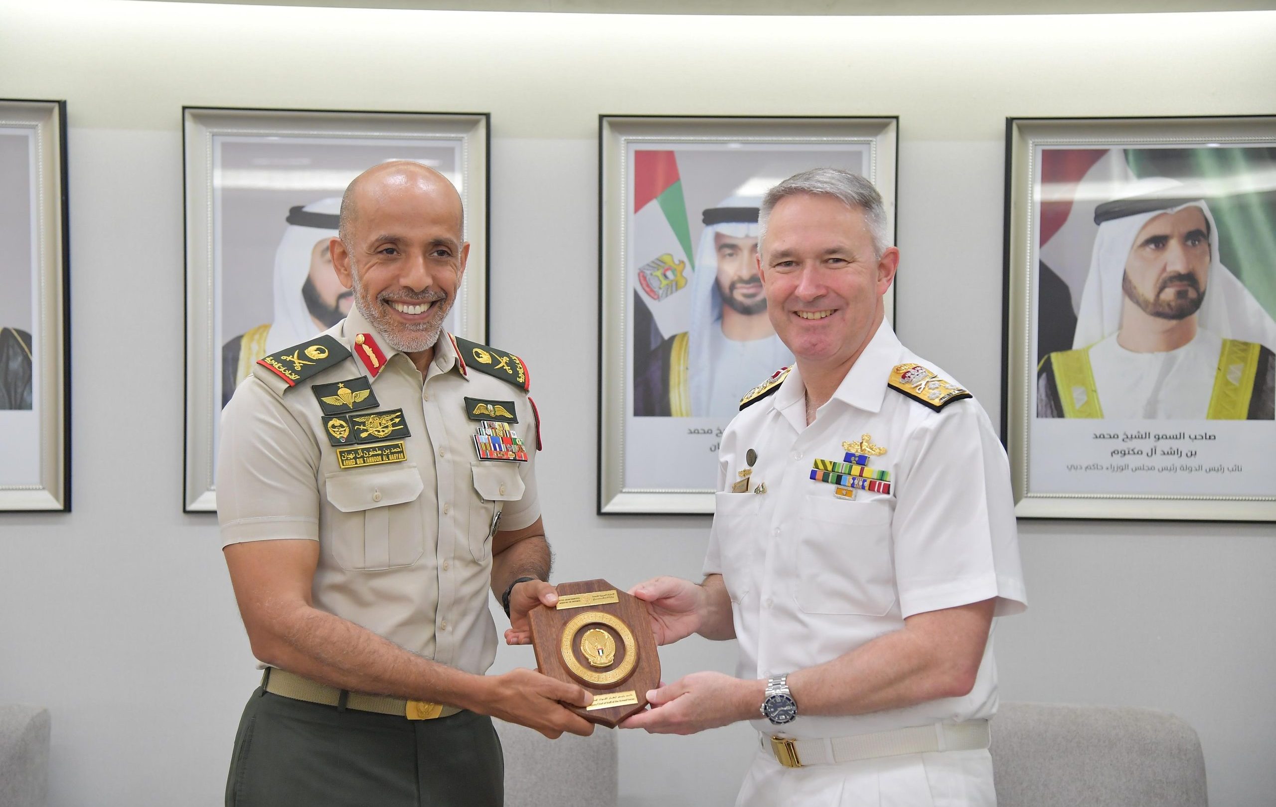 استقبل اللواء الركن الشيخ أحمد بن طحنون آل نهيان نائب رئيس أركان القوات المسلحة، الفريق بحري جستين جونز قائد العمليات المشتركة الأسترالي، والوفد المرافق له.
