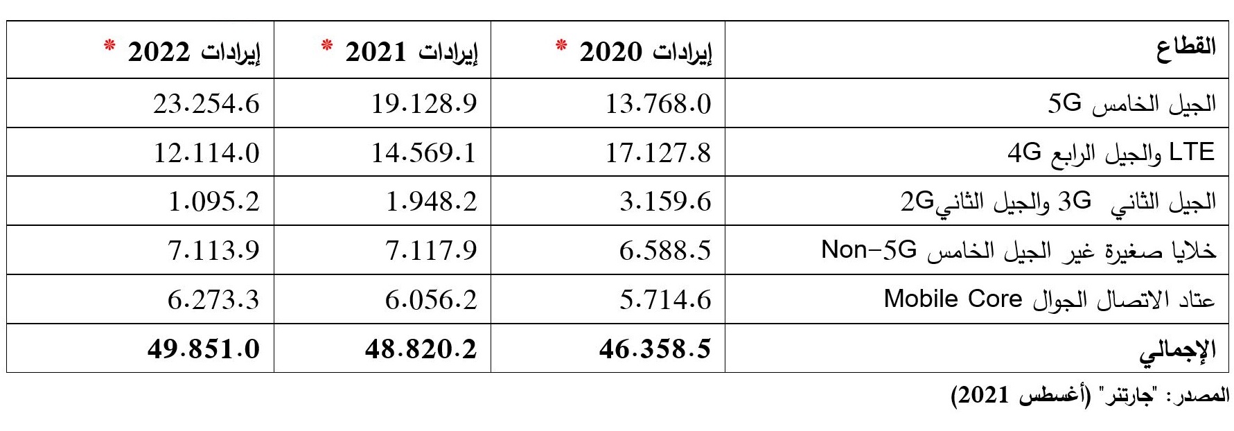 «جارتنر»: نمو إيرادات البنية التحتية لشبكات الجيل الخامس بمعدل 39% خلال 2021