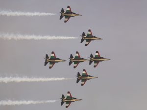 كذلك شمل العرض الجوي مشاركة فريق “Surya Kiran” الأكروباتي، التابع للقوات الجوية الهندية، إلى جانب طائرة الركاب الصينية COMAC 919، التي تشارك للمرة الأولى في المعرض، والمروحية الهجومية KA-52، والمقاتلة سوخوي 57، وطائرة التدريب الإماراتية التصميم والصُنع Bader 250، والمقاتلة ميراج 2000-9، فضلاً عن طائرتي إيرباص 350 وTEJAS، وطائرة الدورية البحرية P8، ليُختتم العرض بتشكيل «Marche Verte»، فريق الاستعراض الجوي للقوات الجوية الملكية المغربية، في لوحة جوية متكاملة تعكس تنوّع قدرات الطيران العسكري والتجاري المشاركة في المعرض.