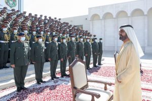 رعى صاحب السمو الشيخ محمد بن راشد آل مكتوم نائب رئيس الدولة رئيس مجلس الوزراء حاكم دبي “رعاه الله” حفل تخريج الدورة الخامسة والأربعين من المرشحين الضباط في كلية زايد الثاني العسكرية في مدينة العين يوم 3 فبراير 2021.