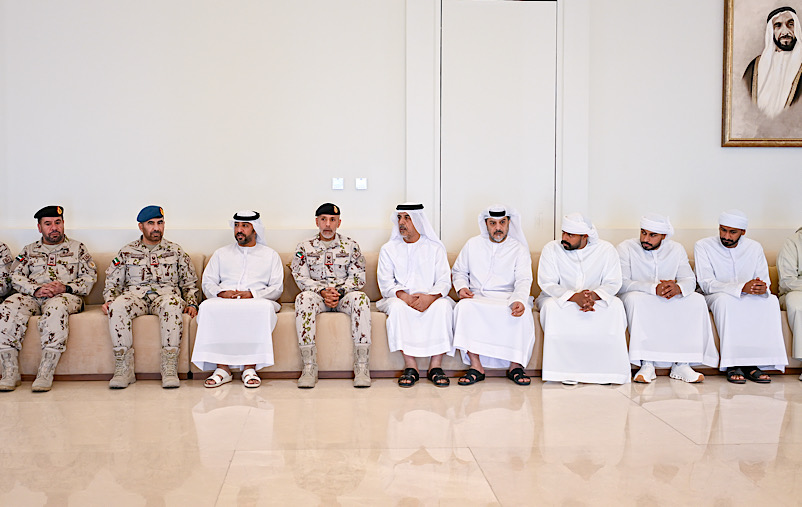 قدم اللواء الركن الشيخ أحمد بن طحنون آل نهيان، ناىب رئيس أركان القوات المسلحة، يرافقه اللواء الركن سعيد سالمين العلوي، قائد كلية الدفاع الوطني، واللواء الركن سعيد حسن اليماحي، رئيس هيئة العمليات والتخطيط الاستراتيجي العسكري، واجب العزاء لأسرة شَهيد الإمارات، النقيب سعيد راشد البلوشي، الذي استشهد إثر تَعَرُّضِهِ لحادث سقوط طائرة عمودية بسبب عطل فني أثناء أَداء الواجِبَ الوطني بالدولة.