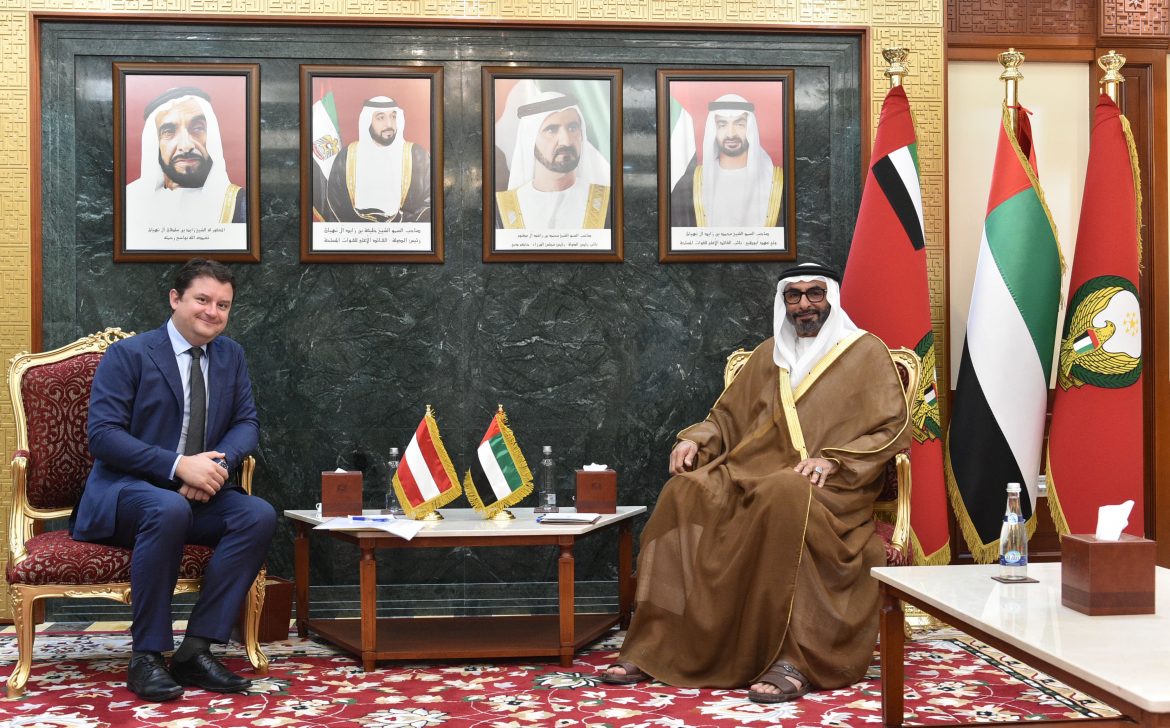 Mohammed bin Ahmed Al Bowardi, Minister of State for Defence Affairs, received in his office Etienne Berchtold, Ambassador of Austria to the UAE.