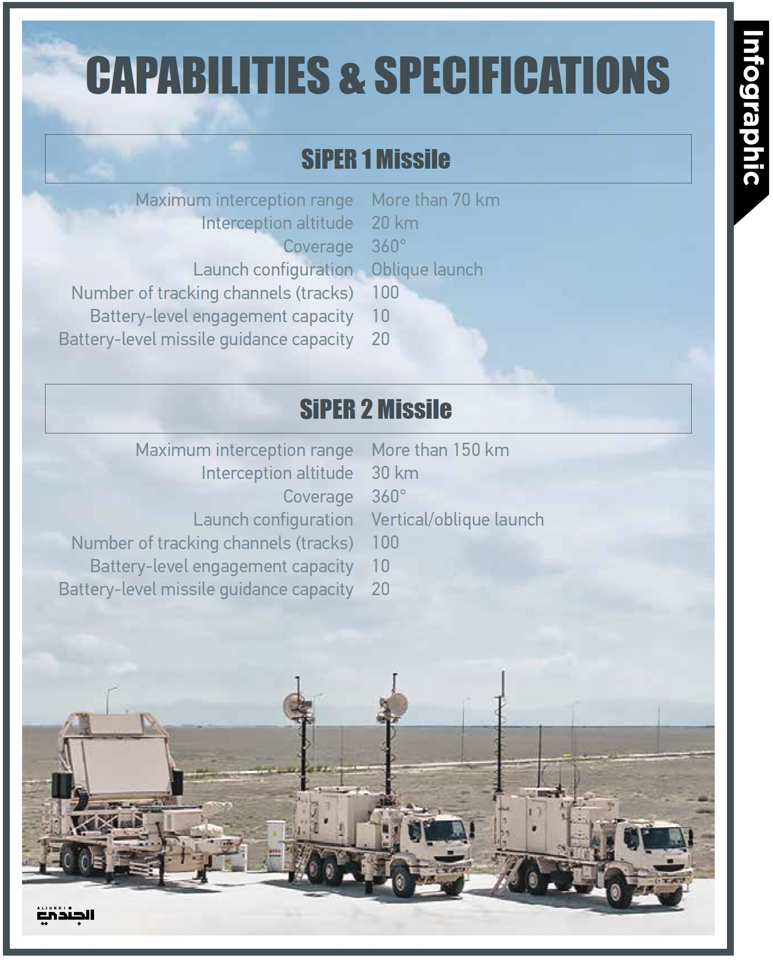 The system’s long-range protection is delivered by two complementary interceptors that operate together as part of an integrated defensive envelope. The first interceptor, SİPER 1, provides engagements beyond 100 kilometres with altitude coverage reaching up to 20 kilometres, offering high accuracy and dependable performance against fast-moving aerial threats. Building upon this foundation, SİPER 2 extends the defensive reach to more than 150 kilometres and altitude capability up to 30 kilometres. Its ability to support both vertical and inclined launch configurations ensures operational flexibility in diverse terrain and engagement geometries. Working in unison, SİPER 1 and SİPER 2 enable 360-degree coverage, rapid reaction times, and strong manoeuvrability against evolving air and missile threats, reflecting Türkiye’s growing expertise in guidance algorithms and advanced propulsion systems.