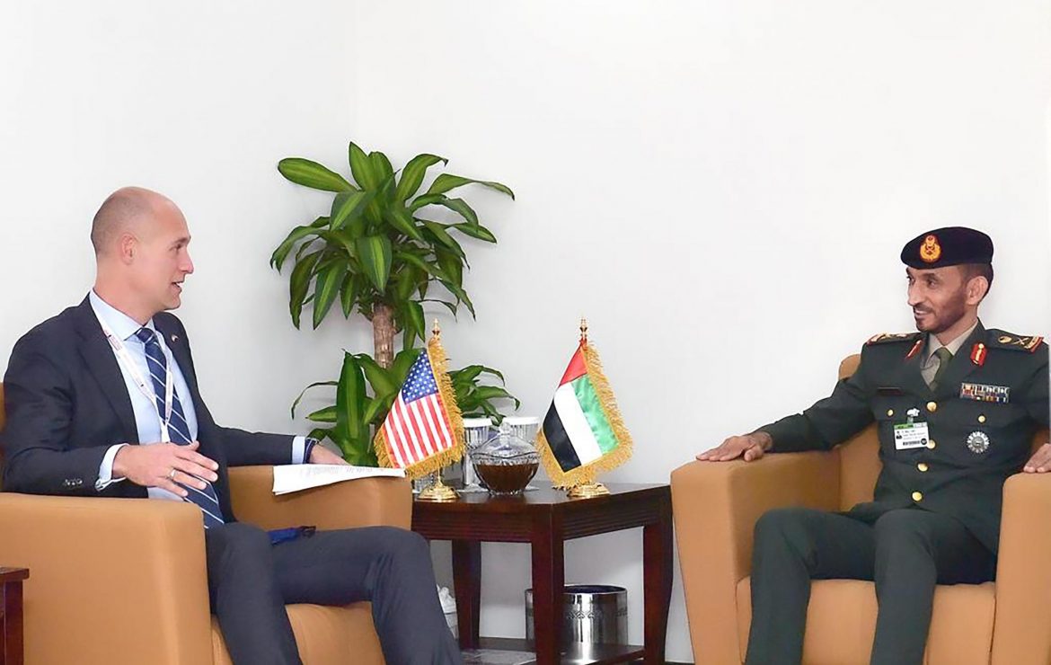 Major General Saeed Al Shehhi, Commander of the UAE Land Forces, today received, in his office at Dubai Airshow 2021, Jed Royal, Deputy Director of the U.S. Defence Security Cooperation Agency (DSCA).