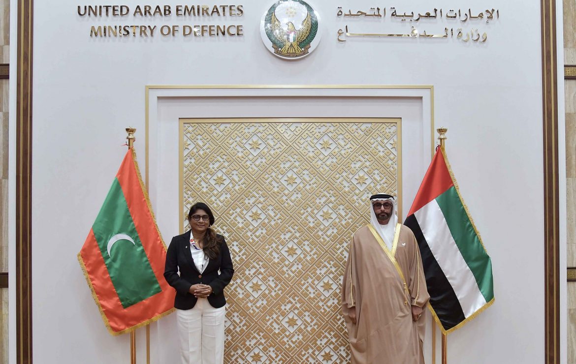 Mohammed bin Ahmed Al Bowardi, Minister of State for Defence Affairs, met today with Mariya Didi, Minister of Defence of the Republic of Maldives, and the accompanying delegation in the presence of Mattar Salem Ali Al Dhaheri, Under-Secretary of the Ministry of Defence, and several senior military officers and officials at the ministry.