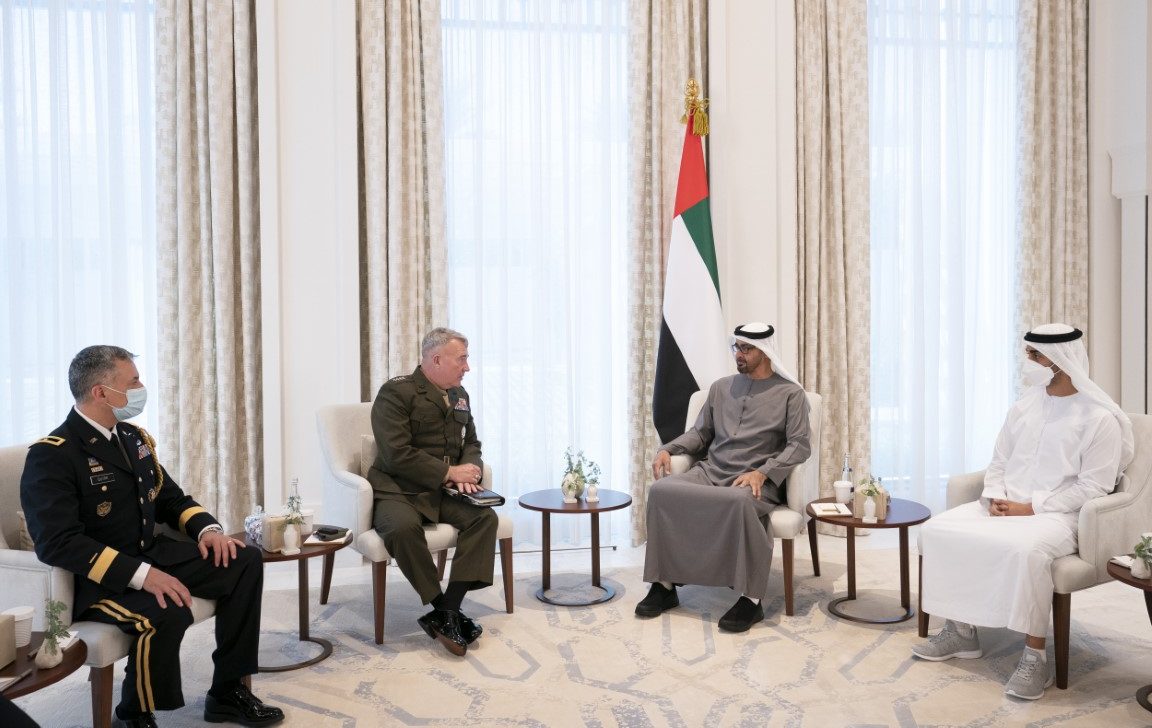 His Highness Sheikh Mohamed bin Zayed Al Nahyan, Crown Prince of Abu Dhabi and Deputy Supreme Commander of the UAE Armed Forces, received at Qasr Al Shati, General Kenneth F. McKenzie, Commander of the US Central Command (USCENTCOM).