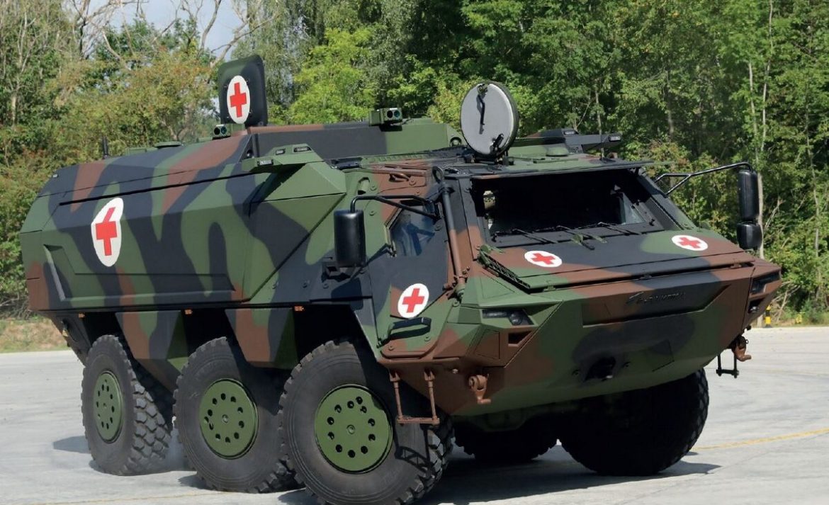 The high-ceilinged version of the new Fuchs-Fox armored field ambulance can carry four wounded personnel. Moreover, the vehicle is equipped with an advanced panoramic vision system that provides 360-degree view.