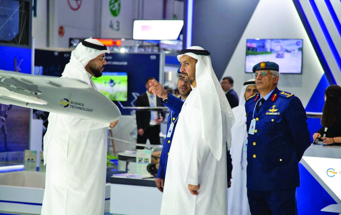 The tour included the pavilion of Al-Seer Marine Equipment and Supplies Company, Technology Investment Science and Industrial Development Company, FlightWin, “Marakeb Technologies”, Houbara Company, Etimad Holding Company for Security Solutions, “Hot Zone Solutions Middle East”, Industrial Solutions, “Earth”, the Insider Deffence Company, the International Golden Group (IGG), the Khalifa University Pavilion, and the Technical Training Academy.